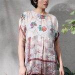These tops are pieced together from vintage silk scarves in the studio. Each top is a couple of scarves hand picked to match together in colour or general vibes, and we are guided by the shape of the scarf, to get maximum use of the fabric.