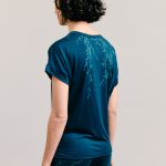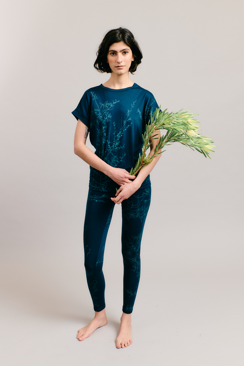 The Riverbend Tea-tree design traces the fine branching structure of the native shrub known for its distinctive scent and natural antibacterial qualities. Originally sketched while camping on the Yarra in Warrandyte during an Up The Creek artist residency, the artwork reflects time spent observing light through tea-tree along the riverbank.