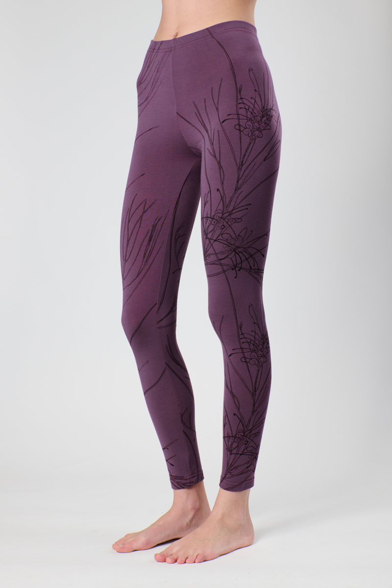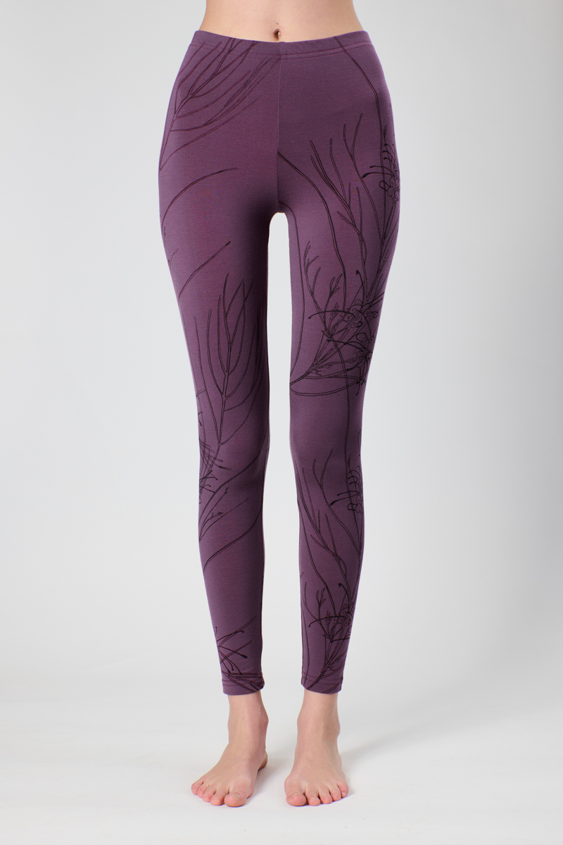 Our new colourway, Scarlett Linearifolia, is inspired by that vivid botanical red you catch on the edges of eucalyptus leaves and seed pods, and on the delicate plant I sketched when it was spilling over the fence of a Northcote unit block. A branch found its way into our studio, later starring in the photoshoot alongside the leggings themselves, its story continuing from fence line to fabric.