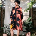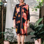This is a one-off, our first dress using second hand fabrics, in this case – holiday sarongs ! They are most likely a viscose fabric, and so its a flowy and breezy number.